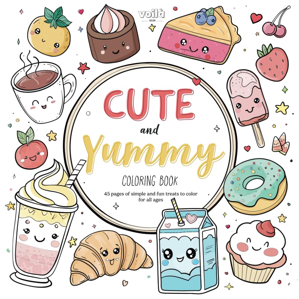 Cute and Yummy Coloring Book: 45 pages of simple and fun treats to color for all ages. (Cute & Easy)